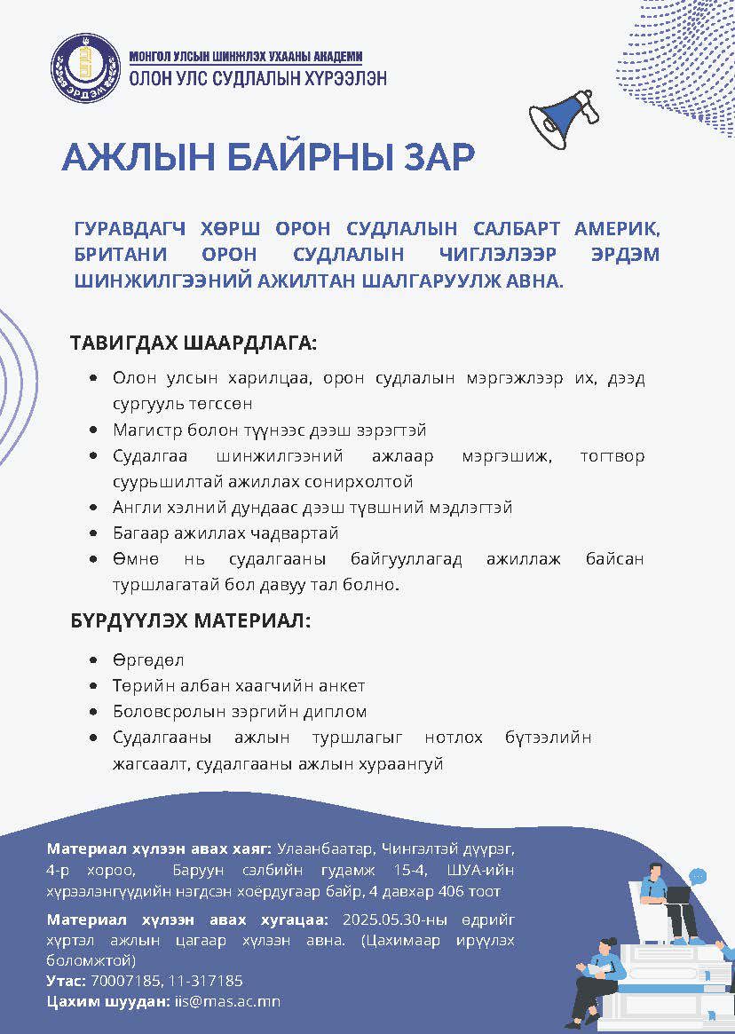 Орос судлалын салбарт эрдэм шинжилгээний ажилтан шалгаруулж авна