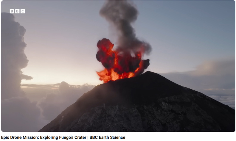 Зураг 1.  Гватема л улсын идэвхтэй “Volcán de Fuego” галт уулыг дроноор ажиглан, хэмжилт хийж буй эрдэмтдийн багийн судалгааны явцын зураглал